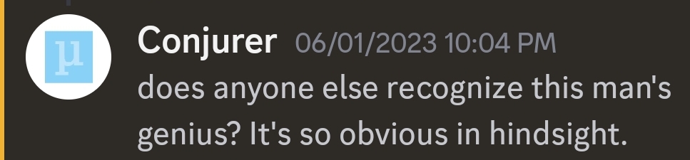 "does anyone else recognize this man's genius? It's so obvious in hindsight."